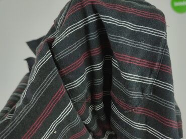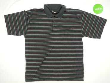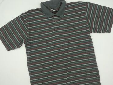 Męska koszulka polo z krótkim rękawem - Kolor: jasnoszary melanż - Krój: klasyczne polo z kołnierzykiem i zapięciem na 2 guziki - Wzór: pionowe i poziome pasy z geometrycznymi detalami w odcieniac...