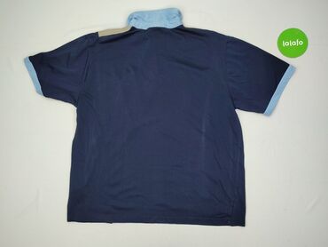 Granatowa koszulka polo męska, rozmiar L. - Klasyczny krój z krótkim rękawem - Materiał: 100% poliester (metka na zdjęciu) - Gładka, lekko połyskująca tkanina, szybkoschnąca i przewiewna - Kołnier...