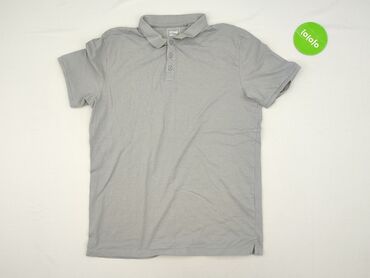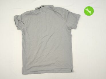 Koszulka polo męska Sinsay, rozmiar S. - Kolor: biały z drobnym, szarym wzorem (motyw paisley/ślimaczków) - Kołnierzyk i mankiety w kontrastowym, granatowym kolorze - Zapięcie pod szyją na trzy gr...