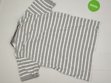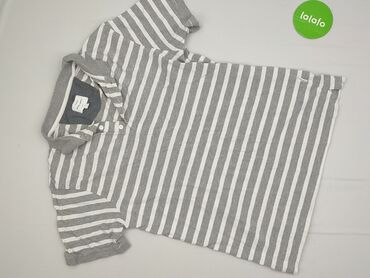 Męska koszulka polo z krótkim rękawem - Kolor: jasnoszary melanż - Krój: klasyczne polo z kołnierzykiem i zapięciem na 2 guziki - Wzór: pionowe i poziome pasy z geometrycznymi detalami w odcieniac...Stan: