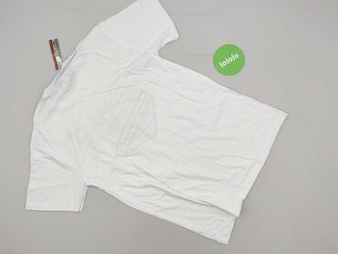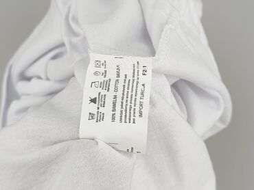 Biała koszulka z krótkim rękawem i okrągłym dekoltem. Z przodu duży, diagonlany nadruk w kolorze czarnym z motywem przypominającym łańcuch DNA/geometryczne paski. Tył gładki, bez nadruku. - Rozmia...