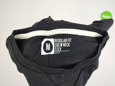 Czarna koszulka T‑shirt męska - Krój: Regular Fit - Dekolt: okrągły (crew neck) - Rozmiar: M (Medium) – nadruk na metce wewnętrznej - Materiał: 100% bawełna - Krótki rękaw - Prosty, gładki model b...