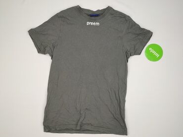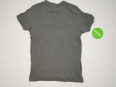 Męska koszulka z krótkim rękawem, dekolt w serek (V-neck), kolor grafitowy/melanż. - Rozmiar: S - Nadruk na plecach: napis „Great Pizza Good Times” w układzie koła (żółty kolor) - Materiał: 50% baw...