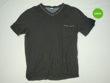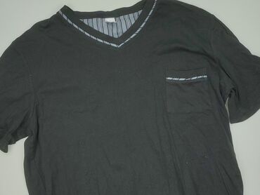 Czarna koszulka męska z dekoltem w serek (V-neck) - Rozmiar: XL (metka widoczna na zdjęciu) - Krój: klasyczny, krótkie rękawy - Kolor: czarny, gładki, bez nadruku - Materiał: miękki, elastyczny dzi...