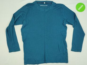 Bluzka męska z długim rękawem, rozmiar M. - Materiał: 100% bawełna (metka na zdjęciu) - Kolor: jasny błękit/szaro-błękitny - Krój: luźny, przedłużany dół lekko zaokrąglony - Dekolt: w kształcie lit...