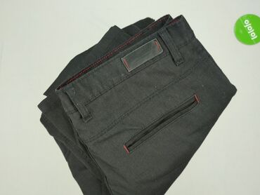 Czarne spodnie materiałowe – chinosy/slim - Krój: dopasowany, zwężane nogawki - Zapięcie: guzik + zamek - Pas: klasyczny, z szlufkami na pasek - Kieszenie: dwie tylne pasplowane (zamknięte/atrapy)...