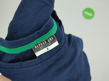 Koszulka męska ALPHAR ONE Menswear - Rozmiar: S (z metki) - Krój: klasyczny T‑shirt z krótkim rękawem - Wzór: biało-granatowe, wąskie poziome paski - Dekolt: okrągły, ściągacz w kolorze granatowym...
