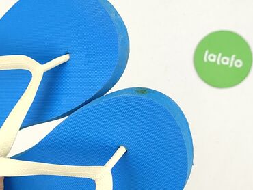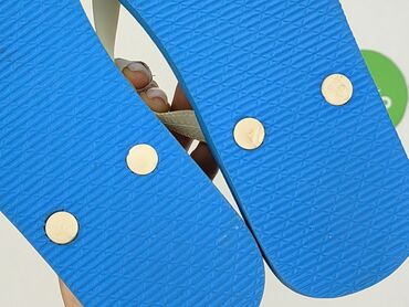 Klapki japonki – kolor niebieski z kremowymi paskami