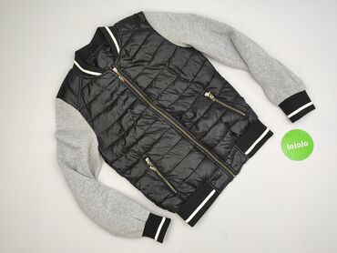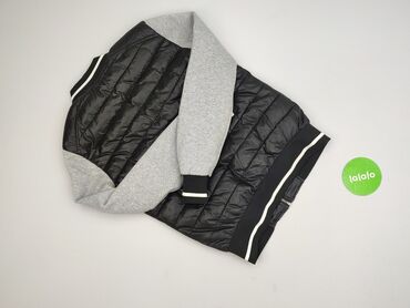 - Dwumateriałowa: pikowany, lekko ocieplany korpus z czarnego nylonu, rękawy z miękkiej dzianiny w kolorze jasnoszarym.