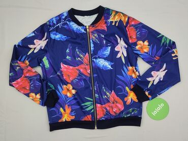 Kurtka/bluza damska RESERVED - Model: lekka bomberka zapinana na suwak - Wzór: granatowe tło w wielobarwne kwiaty (róże, drobne listki), nadruk na całości - Krój: dół oraz mankiety z elastyczną gu...