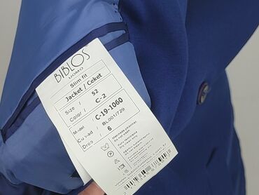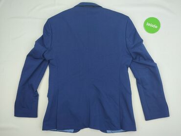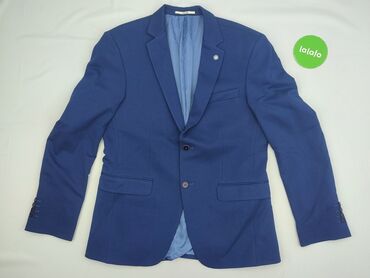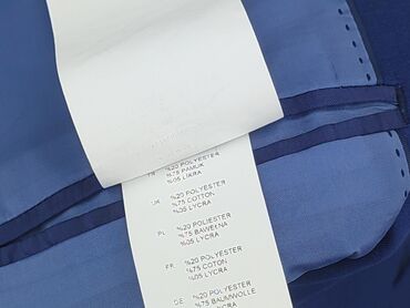 Granatowa marynarka męska Slim Fit JES - Fason: Slim Fit - Rozmiar z metki: 58/176 - Skład tkaniny: 60% elana (poliester), 40% wełna - Podszewka: granatowa w drobny wzór geometryczny - Zapięcie: 2...