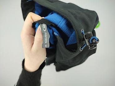 Długość całkowita, szerokość i inne wymiary nie są podane na metce – proszę kierować się zdjęciami detali i kroju. Wnętrze z miękkiego polaru zapewnia komfort cieplny, a elastyczny materiał softshellowy chroni przed wiatrem.