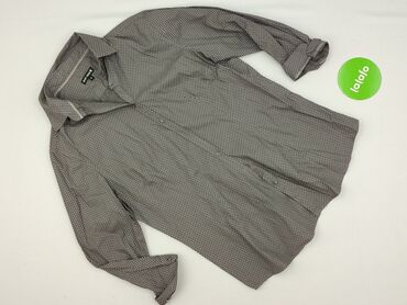 Męska koszula M&S Man - Kolor: szary w bardzo drobny, gęsty mikrowzór (subtelna krata/prążek). - Fason: klasyczna zapinana na guziki, długi rękaw, mankiety na 2 guziki, kołnierzyk klasyczny. - Zap...