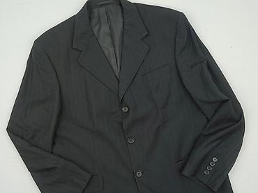 Garnitur – marynarka męska GAM-TEX - Kolor: ciemnoszary, delikatna faktura - Fason: jednorzędowy, 2‑guzikowy, klasyczne szerokie klapy - Materiał: 55% wełna, 45% poliester (metka) - Rozmiar z metk...