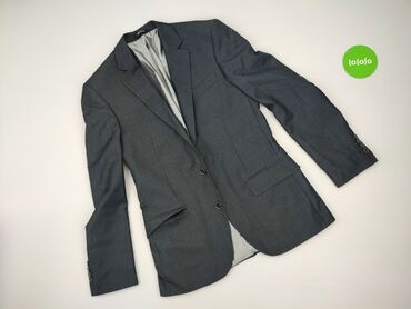 Marynarka męska w kolorze granatowym, zapinana na jeden guzik, z klapami. Posiada dwie kieszenie z przodu oraz jedną kieszeń na piersi. Idealna na formalne okazje, do biura lub na specjalne wydarze...