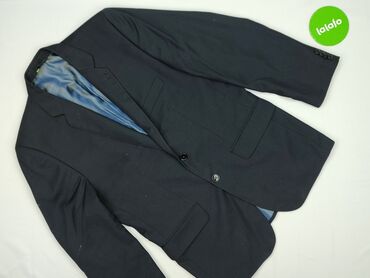 Marynarka męska granatowa 52S - Krój: jednorzędowy, 2‑guzikowy - Rozmiar z metki: 52S (170 / 104 / 92) - Materiał: 60% wełna, 40% wiskoza - Podszewka: 100% poliester - Kolor: ciemny granat z subte...