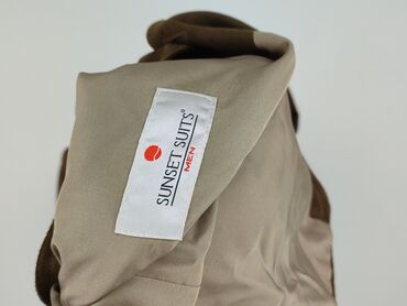Męska marynarka w paski SUNSET SUITS MEN - Model z metki: garnitur dwuczęściowy „GULIO 2 B” (oferowana marynarka) - Kolor: brąz z delikatnym, pionowym prążkiem - Krój: jednorzędowy, 2‑guzikowy - K...