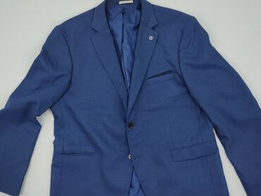Męska marynarka SILVENERO w kolorze granatowym. - Krój: jednorzędowy, zapinana na 1 guzik - Klapy: wąskie, z kontrastowym wykończeniem przy kołnierzu - Kolor: intensywny granat - Podszewka: wzorzy...Stan:
