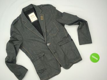 Marynarka męska Summer-cha - Krój: jednorzędowa, 3‑guzikowa - Klapy: klasyczne, otwarte - Materiał: 80% wełna, 20% poliester (na metce) - Podszewka: jasna, gładka - Wzór: szara tkanina w delikatne...
