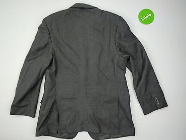 Męska marynarka garniturowa w kolorze grafitowym. - Rozmiar z metki: 44M (176/88/78) - Skład tkaniny: 55% wełna, 45% poliester - Wyprodukowano w Polsce - Zapięcie na jeden guzik z przodu - Klapy k...