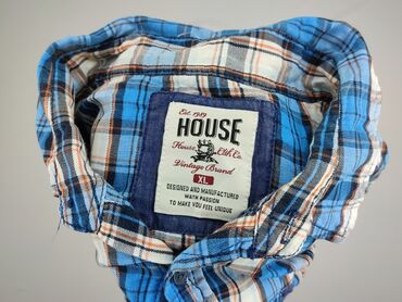 Koszula męska HOUSE, rozmiar XL - Krój: klasyczna koszula z krótkim rękawem, zapięcie na guziki - Wzór: krata w kolorach pomarańczowym i szarym - Kołnierzyk: zapinany na dwa guziki (button-down) -...