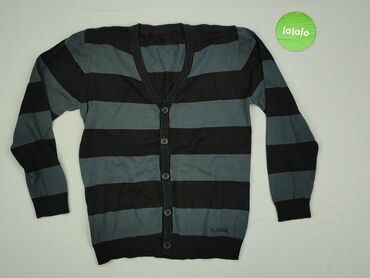 Sweter kardigan w paski – 100% bawełna - Model: rozpinany na guziki, dekolt w kształcie litery V - Rozmiar z metki: L - Materiał: 100% COTTON (bawełna), miękka dzianina - Wzór: wielokolorowe, pozi...