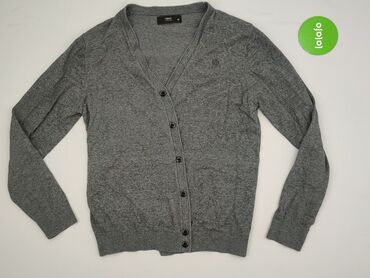Kardigan męski, szary melanż - Klasyczny sweter zapinany na guziki (4 guziki z przodu) - Głęboki, miękko układający się dekolt w kształcie litery V - Drobny, gęsty splot dzianiny; lekka, przyjemna...