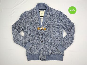 Męski kardigan na guziki - Krój: klasyczny kardigan z dekoltem w serek (V-neck) - Zapięcie: 4 guziki z przodu - Kolor/wzór: szary, drobne prążki/melanz - Materiał: cienka, miękka dzianina (przyjem...Stan: