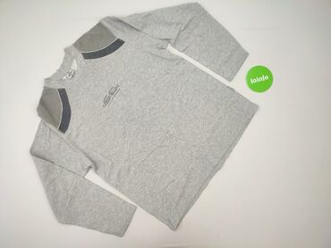 Męska bluzka z długim rękawem i dekoltem w serek. - Kolor: jasnoszary/beżowy, delikatne prążki - Krój: prosty, długi rękaw, lamówka przy dekolcie w kontrastowym odcieniu - Materiał: 65% poliester,...