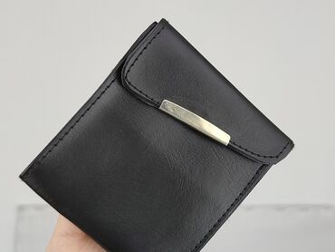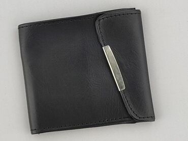 Męski portfel składany – czarny, ze srebrnym detalem - Klasyczny, kompaktowy portfel dla mężczyzny, w kolorze czarnym - Materiał: skóra ekologiczna o gładkiej fakturze - Zamknięcie na klapkę z ele...Stan:
