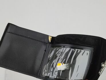 Męski portfel/kartownik kompaktowy - Klasyczny, czarny kolor z kontrastowym białym przeszyciem - Zamykany na pasek z metalowym zatrzaskiem - Wewnątrz przeźroczyste wkłady na karty/dokumenty (album...
