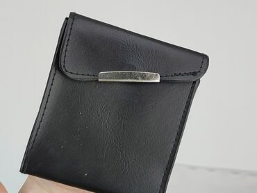Męski portfel/kartownik kompaktowy - Klasyczny, czarny kolor z kontrastowym białym przeszyciem - Zamykany na pasek z metalowym zatrzaskiem - Wewnątrz przeźroczyste wkłady na karty/dokumenty (album...