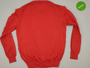 Męski sweter z dekoltem V, rozmiar L - Kolor: koralowo‑łososiowy, delikatnie melanżowy - Krój: klasyczny, z prążkowanymi ściągaczami przy mankietach i u dołu - Dekolt: V‑neck – idealny do koszuli ...Stan: