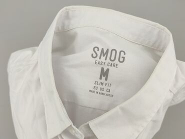 Męska koszula SMOG – slim fit - Rozmiar z metki: M - Krój: dopasowany (slim fit) - Kolor: biały w cienkie, pionowe, ciemnoszare paski - Zapięcie: na guziki z przodu - Kołnierzyk klasyczny - Długi r...
