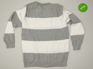 Męski sweter Esprit - Fason: klasyczny sweter z okrągłym dekoltem (crew neck) - Kolor: grafitowy/szary - Wzór: poziome, wąskie białe paski na całej powierzchni; na piersi naszywka/haft z literami ...