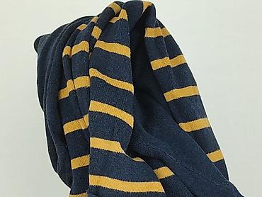 - Wzór: poziome paski w kolorze musztardowym na granatowym tle (przód i tył)