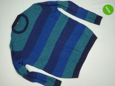 Męski sweter LIVERGY, rozmiar M (48/50) - Fason: klasyczny sweter z okrągłym dekoltem (crew neck), długie rękawy - Wzór: poziome pasy w kolorach granatowym, szarym melanż i czerwonym - Materiał: m...