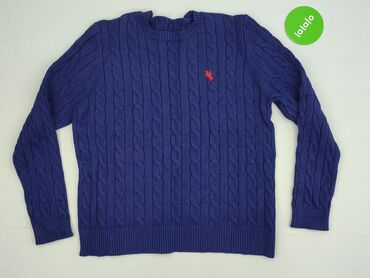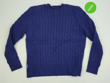 Męski sweter dzianinowy z długim rękawem - Kolor: ciemny turkus/teal - Krój: klasyczny, okrągły dekolt (crew neck) - Wykończenia: ściągacze przy kołnierzu, mankietach i dole - Materiał (z metki): ...