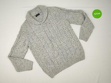 Męski sweter MUZOLAND, rozmiar L - Kolor: jasnoszary (melanż) - Krój: klasyczny, okrągły dekolt (crew neck) - Splot: strukturalny wzór w romby na froncie; gładki tył - Materiał: 60% wełna, 40% akr...