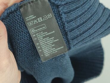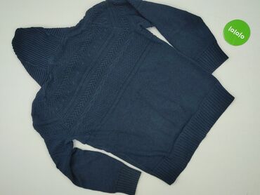 Granatowy sweter męski z kołnierzem i guziczkami - Rozmiar: XL (na metce) - Skład: 60% bawełna, 40% akryl - Kolor: granat - Fason: sweter z wysokim, prążkowanym kołnierzem zapinanym na 3 guziki (p...