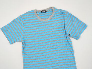 Koszulka męska F&E (Free & Easy) – rozmiar M - Kolor: niebieski z czarnymi, poziomymi paskami; rękawy gładkie z nadrukowanymi kreskami przy mankietach - Krój: klasyczny T‑shirt z okrągłym dekoltem...
