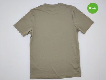 Męska koszulka sportowa z krótkim rękawem - Kolor: khaki/oliwkowy - Krój: klasyczny T-shirt, okrągły dekolt - Materiał: 100% poliester (metka na zdjęciu) - Lekka, szybkoschnąca tkanina – dobra na ...Stan: