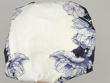- Wzór: bogaty, dwustronny nadruk kwiatowy w odcieniach granatu, fioletu i błękitu; dekoracyjne panele i motywy geometryczne na rękawach i bokach