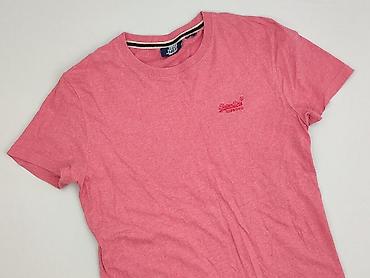 Męska koszulka T-shirt, kolor intensywny róż (fuksja). - Krój: klasyczny, z okrągłym dekoltem (crew neck), krótkie rękawy - Rozmiar: L (oznaczenie wewnętrzne) - Materiał: miękka, elastyczna dzianin...
