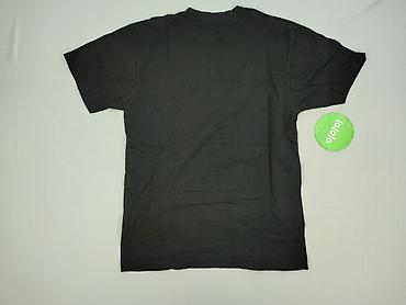 Czarna koszulka męska, prążkowana - Krój: klasyczny T-shirt z okrągłym dekoltem, krótkie rękawy - Wzór i materiał: pionowe, drobne prążki; 100% bawełna (metka) - Rozmiar z metki: M - Detale: delik...