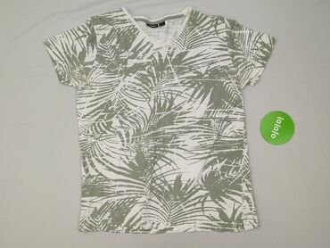 T-shirt męski LIVERGY - Kolor: biały - Krój: z dekoltem w serek (V-neck), krótki rękaw - Kieszonka na piersi z tropikalnym nadrukiem (liście, ananasy) w odcieniach zieleni - Materiał: miękka, oddy...