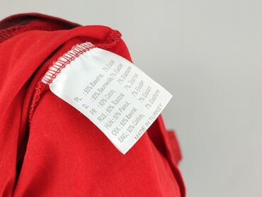 Czerwona koszulka męska/damska z krótkim rękawem - Klasyczny krój z okrągłym dekoltem (crew neck) - Gładka, jednolita tkanina bez nadruków - Kolor: intensywna czerwień - Rozmiar: S (oznaczenie na ...