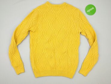 Sweter męski z dekoltem w serek – żółty, prążkowany - Krój: długi rękaw, dekolt V - Faktura: pionowe prążki - Kolor: jasny żółty (pastelowy) - Skład materiału (etykieta): 65% bawełna, 35% poliamid...
