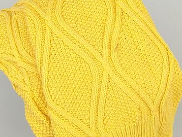 Żółty sweter damski z dzianiny - Kolor: intensywny żółty - Krój: luźny, prosty - Dekolt: zaokrąglony (round neck) - Rękawy: długie - Splot: dzianina z pionowymi, subtelnymi prążkami/ściągaczowymi ...