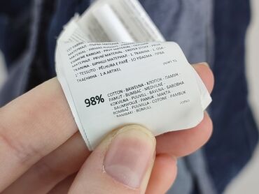 - Materiał: 98% bawełna (etykieta widoczna na zdjęciu) + domieszka elastanu/poliestru niewidoczna na zdjęciu – tkanina gładka, lekko elastyczna i oddychająca